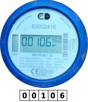 Indiquez dans le formulaire ci-dessous, les chiffres des m3 visibles sur votre compteur en partant de la gauche vers la droite.